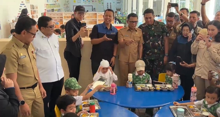 Wakil Menteri Dalam Negeri (Wamendagri) Bima Arya Sugiarto ikut meninjau langsung tahap pertama program Makan Bergizi Gratis di Sekolah Bosowa Bina Insani Bogor.